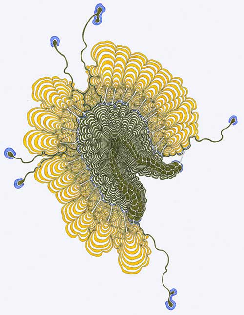 To get some inspiration for some sketch's and collarges in my summer project sketchbook I looked at the work of Daniel Zeller. The amount of intricate detail used is amazing and the repeative patterns draw your eyes around the image. His work is like obsessive doodling, using obsessions with maps, ski - fi and fantasy to create these incredible illistrations. I have been very inspired by his work and it has made me want to try ideas with repeating patterns that include as much detail as his.